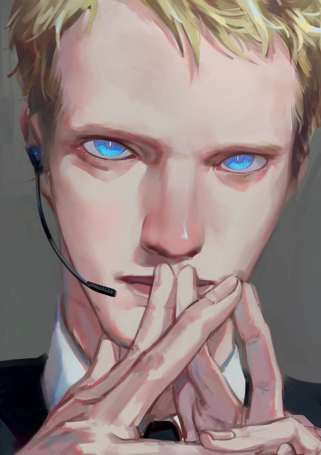 Jarvis的长相凌厉尖锐,抿起薄唇的时候像是身体里融入了玻璃,冰冷中带着锐利。他淡金色的发色和他那苍白的肤色相衬,看起来更加多了几分疏离,但是因为超于常人的身高又平白的给他增添了碾压他人的压迫感。